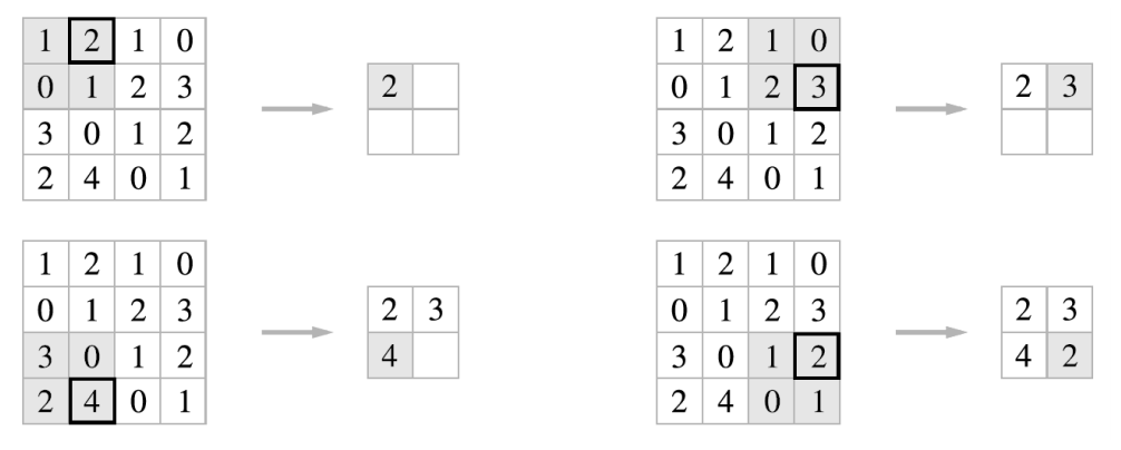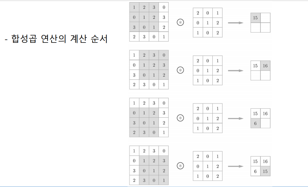 ex) 입력(4, 4), 필터(3, 3), 출력(2, 2)