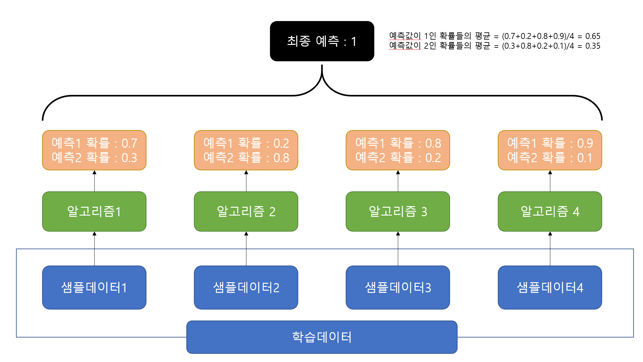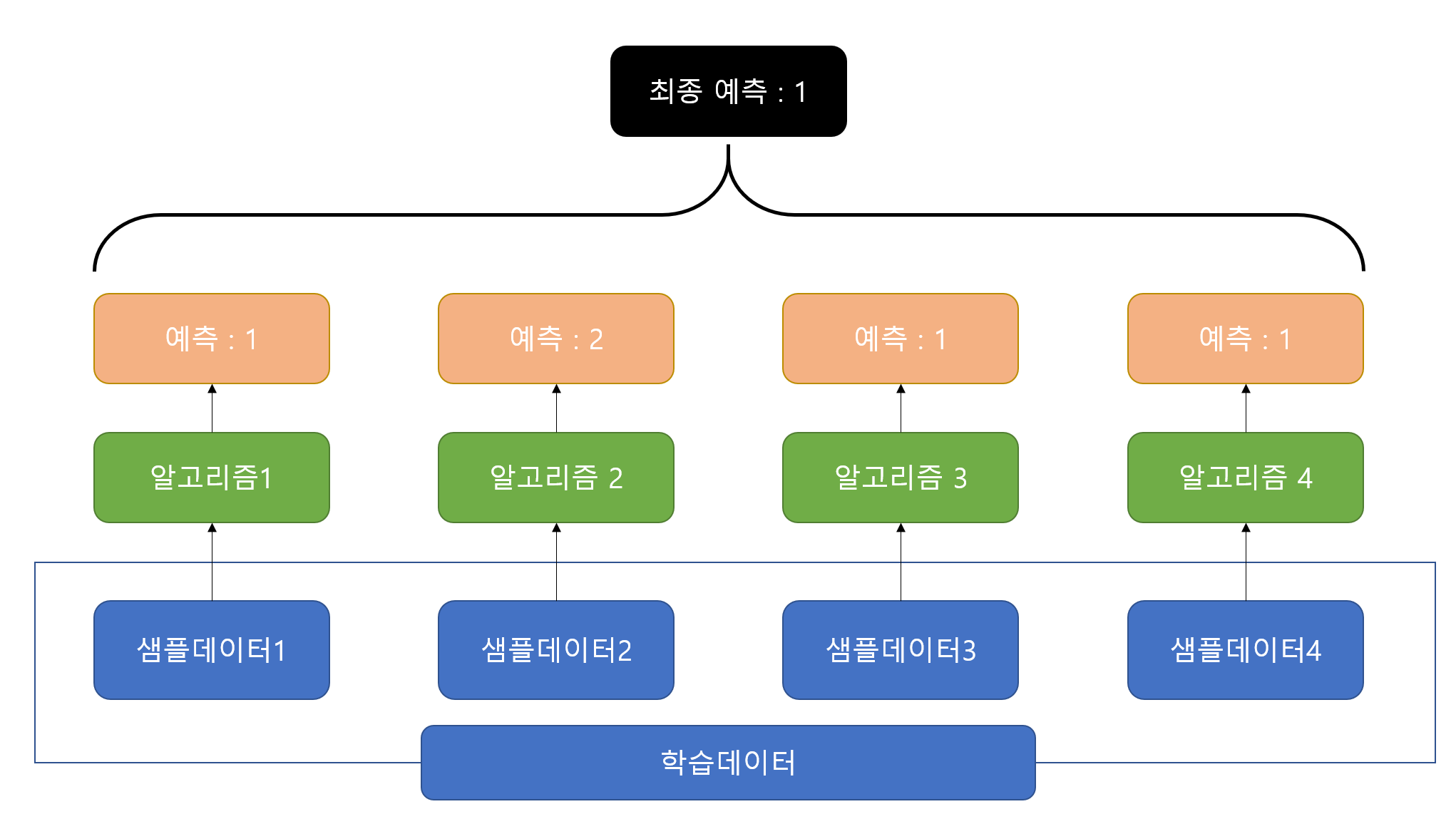 앙상블은 여러가지의 알고리즘을 합쳐놓은 것을 의미한다.