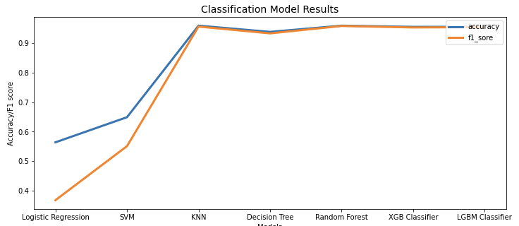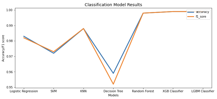 분류 모델로는 Logistic Regression, SVM, KNN, Decision Tree, Random Forest, XGB Classifier, LGBM Classifier를 사용했다.