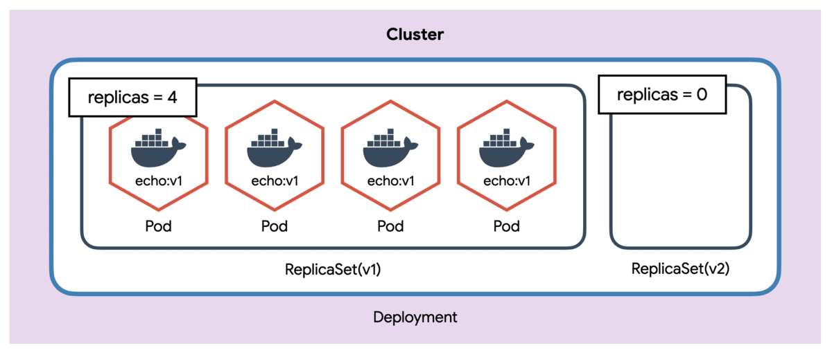 쿠버네티스의 구조를 다시 한 번 살펴보자면 아래와 같이 컨테이너 < Pod < ReplicaSet < Deployment < Service 순서대로 각각을 감싸고 있다. 이번 실습에서는 Deployment를 생성하고 그 내부에 있는 ReplicaSet이나 Pod를 수정해본다.