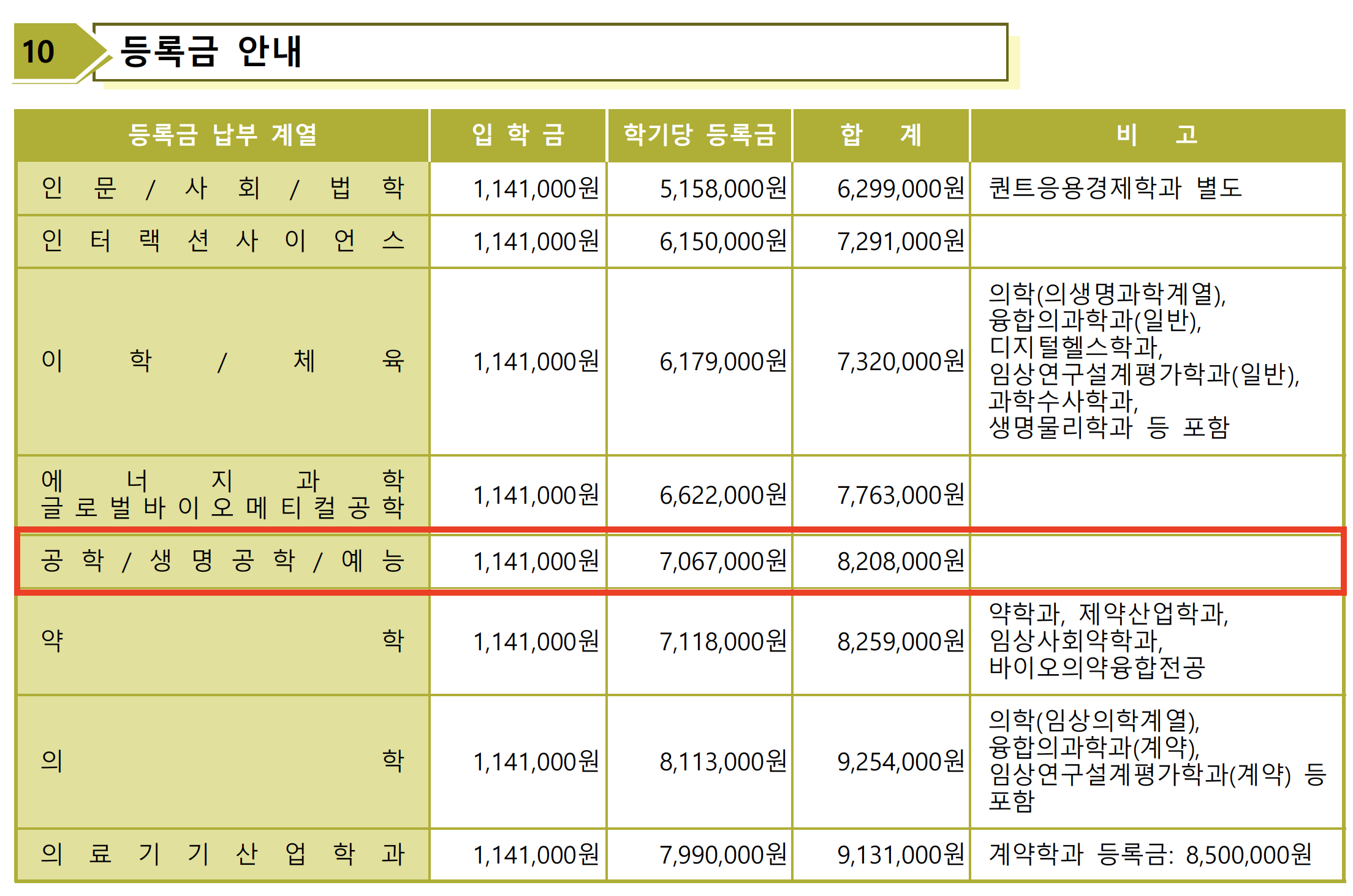 2020학년도까지만 해도 한학기 등록금이 699만원이었는데 올랐다.