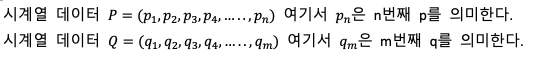 두 시계열의 길이 n, m은 길이가 같을 수도 있고 다를 수도 있다.
