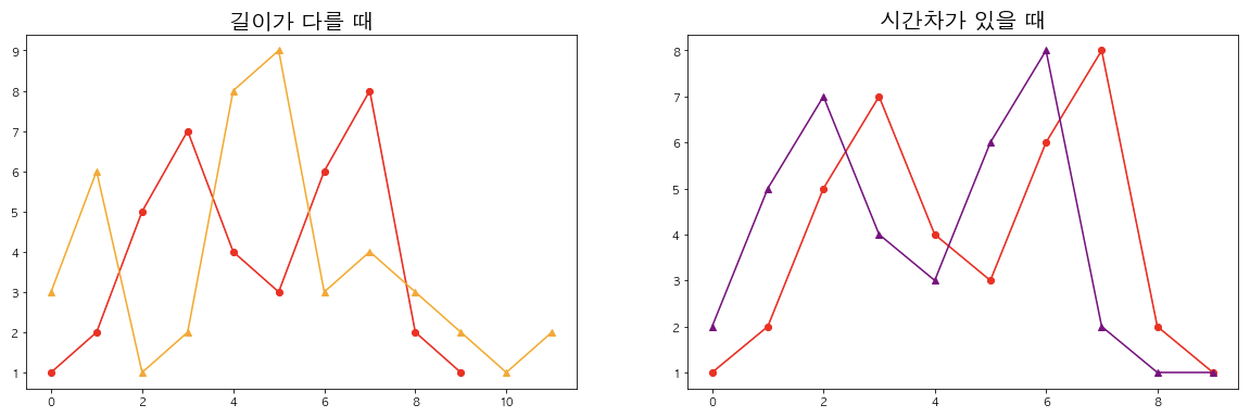 - 비슷한 패턴이지만 시간차가 있는 경우(shift 발생) 유사도 비교 가능