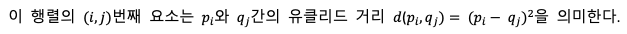 (1, 1) 자리에는 첫번째 요소들의 차의 제곱값을 적어준다.