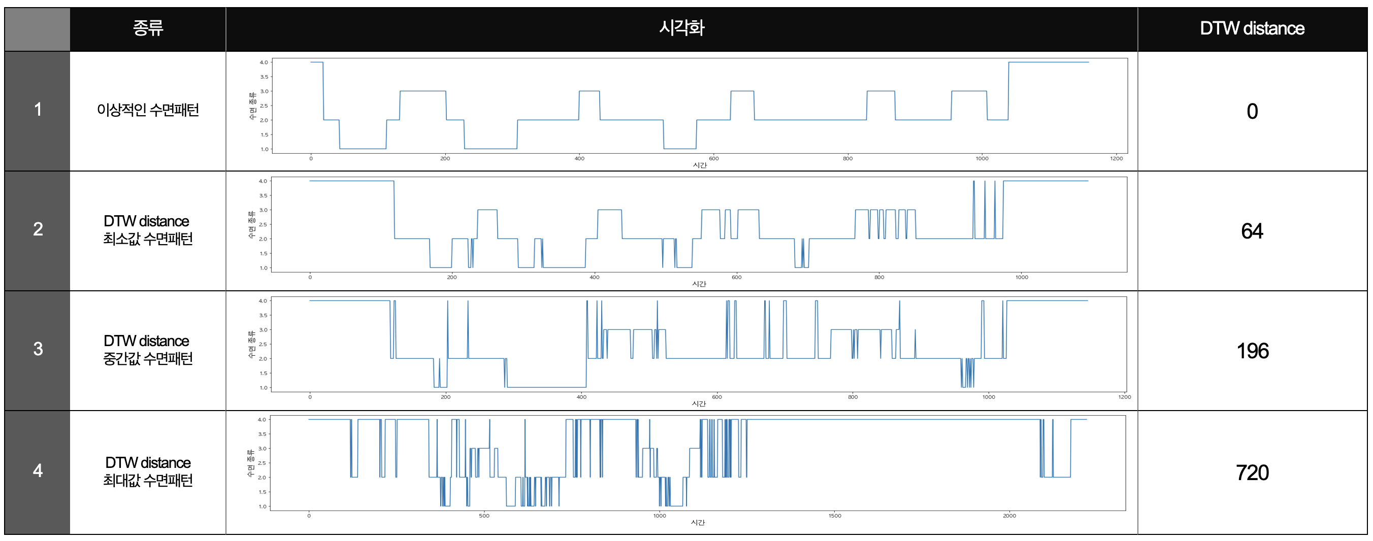 위 표와 같이 DTW 거리에 따른 분류 및 차이를 확인할 수 있다.