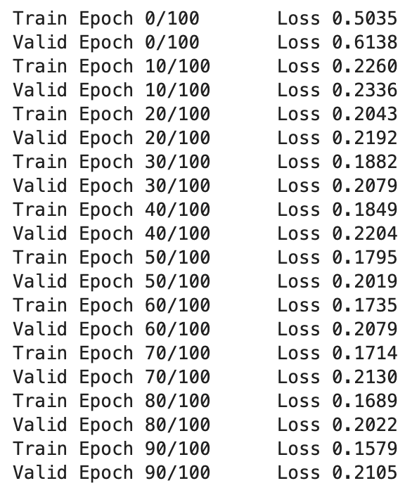 print(f'Valid Epoch {epoch}/{n_epoch}\tLoss {np.mean(loss_arr):.4f}')