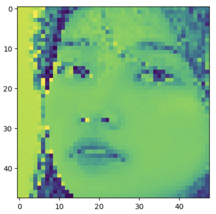 input_data = np.reshape(face_zoom[0].flatten(), (1, 48, 48, 1))