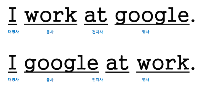 google은 같은 단어인데 앞뒤 단어들에 따라 명사 또는 동사로 사용된다.